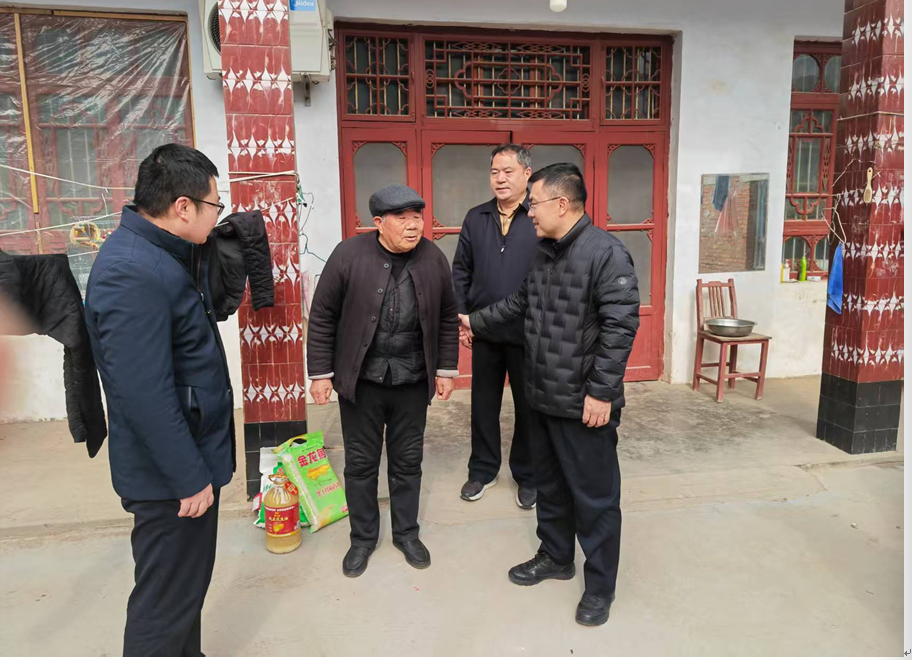 走访过程中,孟宪炜一行先后来到第一书记帮扶的徐楼村、张店村、双铺村、李庄村,深入困难党员和群众家中,与他们亲切交谈,详细了解他们的身体健康、生活起居、家庭收入以及目前存在的实际困难等情况,并为他们送上米、面、油等春节慰问品,并致以新春祝福,叮嘱他们注意防寒保暖、保重身体,度过一个欢乐祥和的春节,让困难党员和群众切实感受到学校的关怀与温暖。
